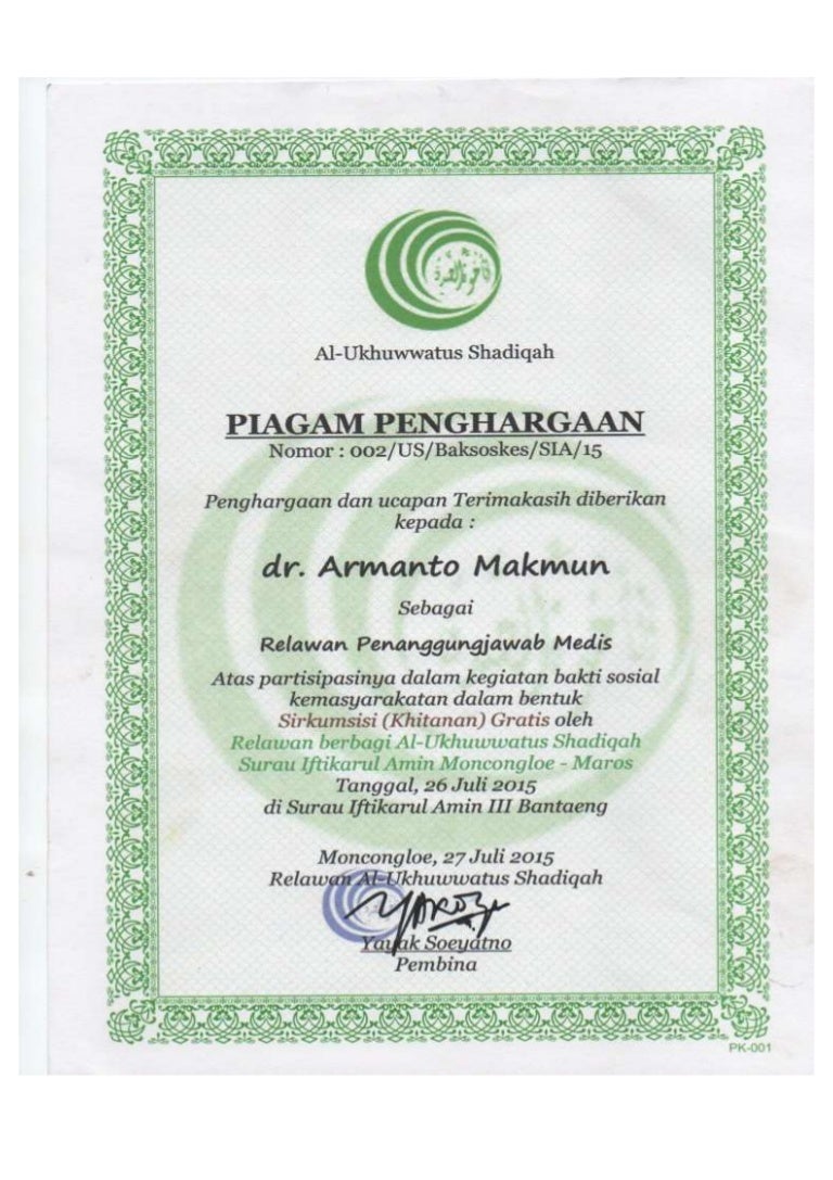Piagam Penghargaan Relawan Penanggungjawab Medis